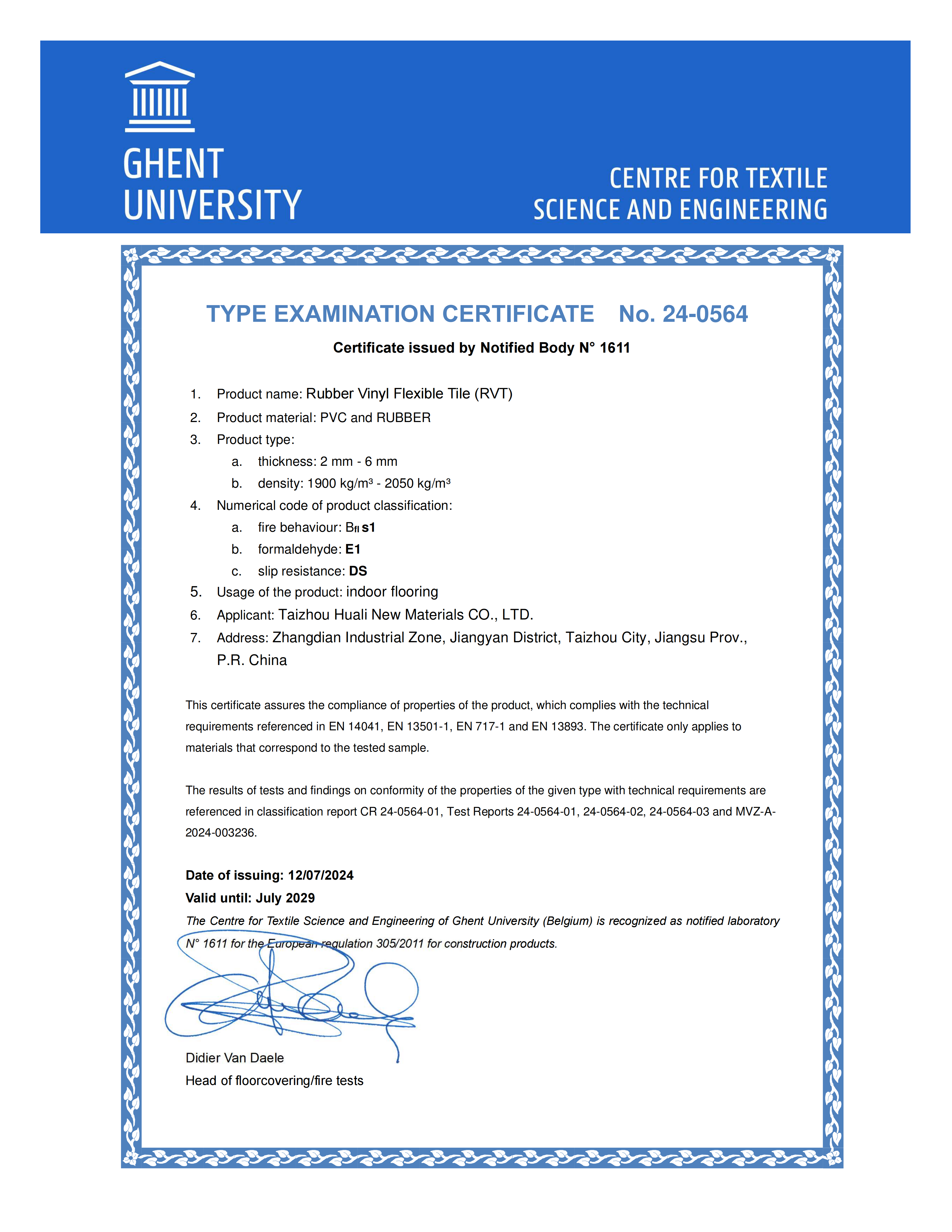 9Wear Layer  Abrasion ResistanceEN 13329                            (S-42, 200 cycle change)IP≥4000cycles(0.55mm wear layer),